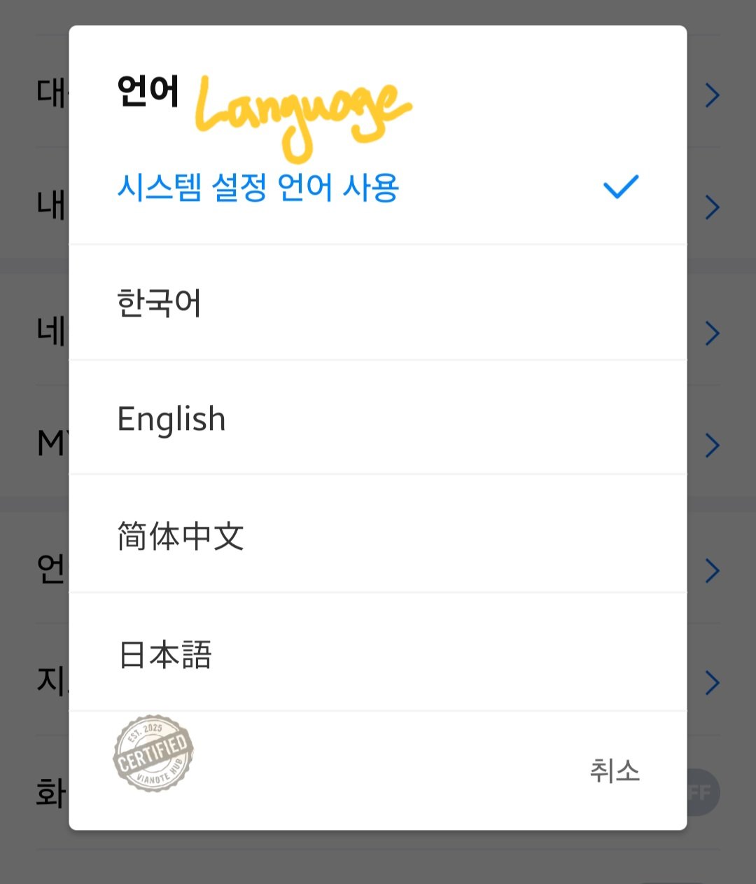 - Choose from Korean, English, Chinese, or Japanese